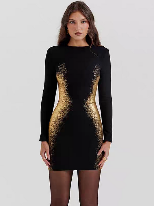 Black and Gold Full Sleeve Bodycon Short Dress