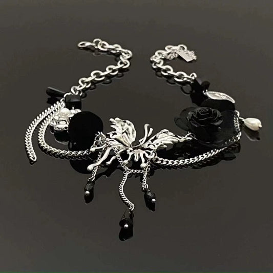 Black Floral Deep V Spaghetti Strap Backless Crop