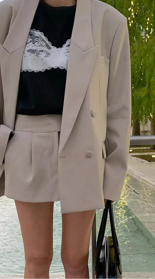 Black Off Shoulder Pleated Mini Office Two Piece Set