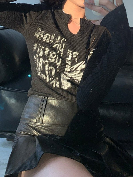 Black Leopard Peek-a-Boo Sleeve Skull Graphic Sweatshirt