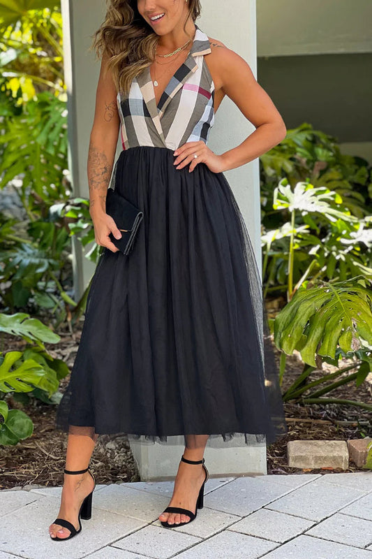 BLACK TULLE SKIRT AND PLAID TOP HALTER DRESS
