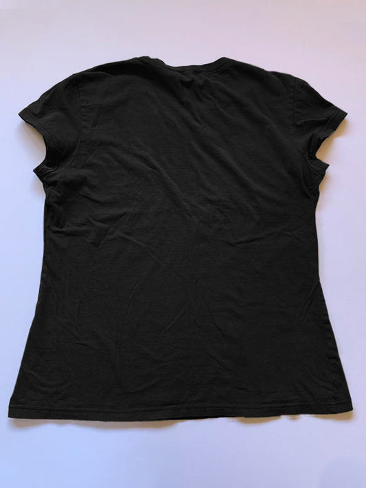 Black Vintage Letter Rhinestone Print Slim Short Sleeve Tee