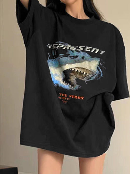 Black Vintage Oversized Animal Print Short Sleeve Tee