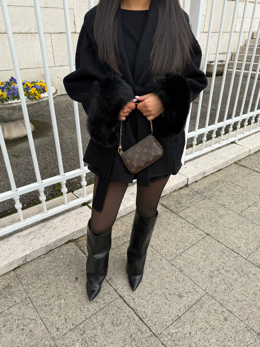 Black White Patchwork Crop Shorts Office Two Piece Set