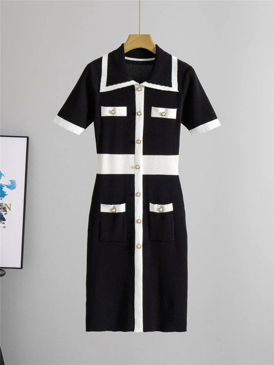 Black – Casual Striped Short-Sleeve Two Piece Set