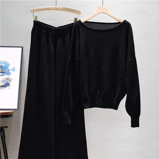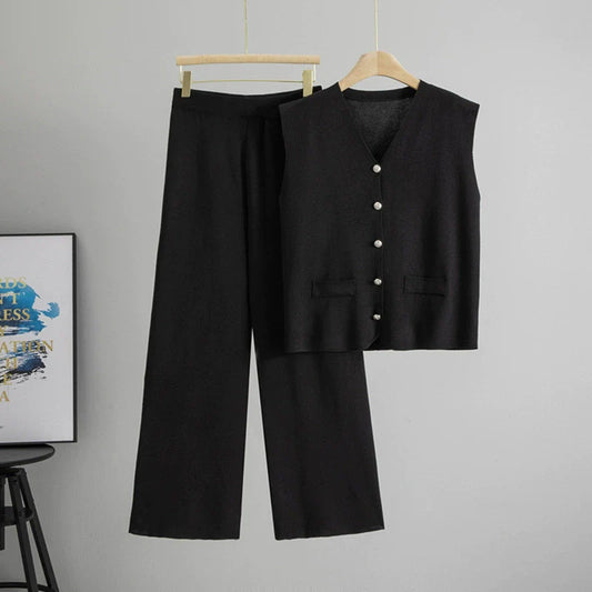 Black – Knitted Cardigan Wide-Leg Pants Set