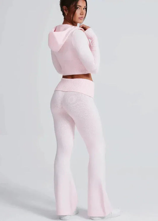 Bliss Knit - Fitted Hoodie and Flare Pants Set