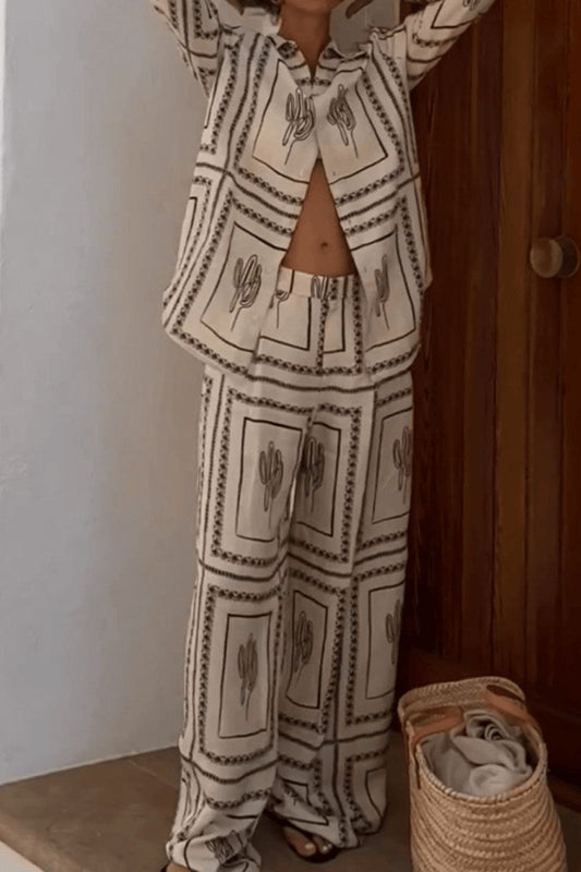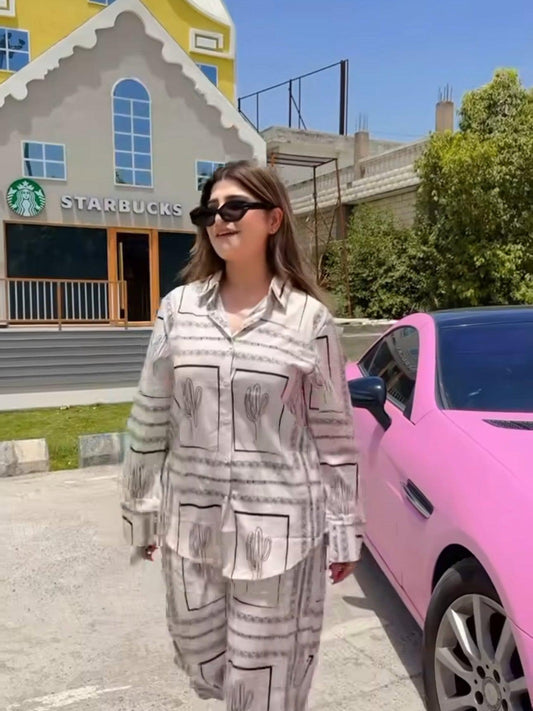 Abstract Print Full Sleeves Shirt & Pants Coord Set