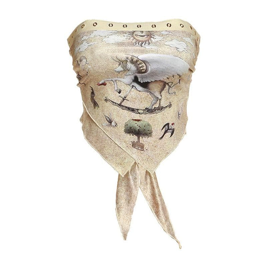 Abstract print contrast self tie backless tube crop top