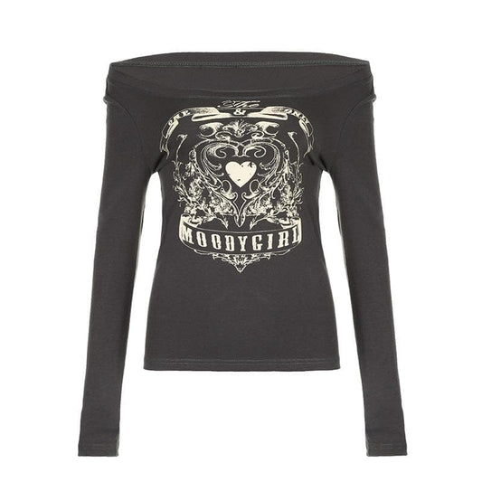 Abstract off shoulder contrast long sleeve top