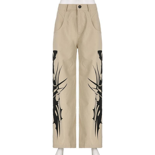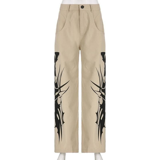 Abstract high rise button pocket contrast straight leg pant