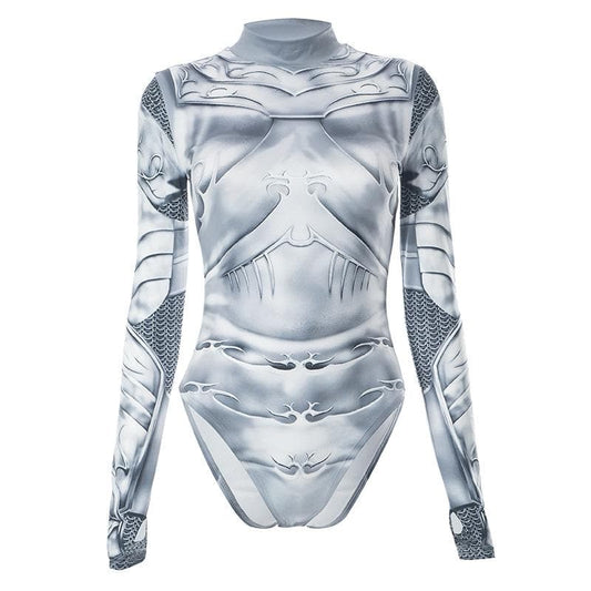 Abstract long sleeve contrast gloves high neck bodysuit