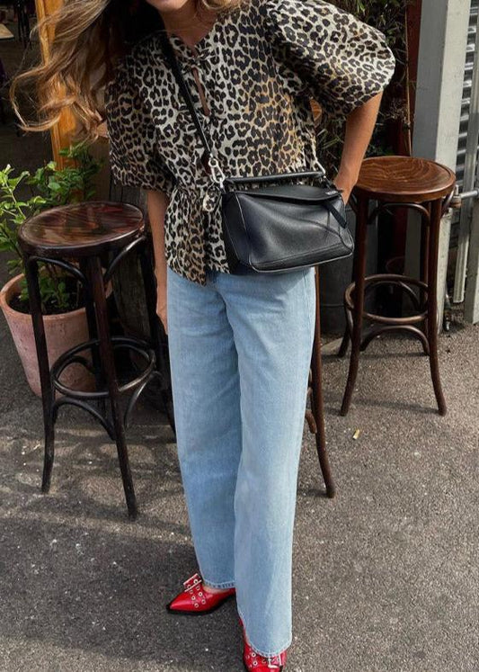 Bold Contrast Off-Shoulder Straight Neck Blouse