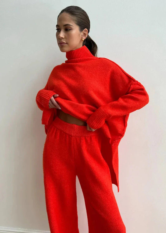 Bold Comfort - Oversized Knit Turtleneck and Pants Set