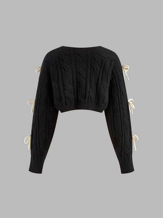 Bow Knotted Cable Knit Cardigan