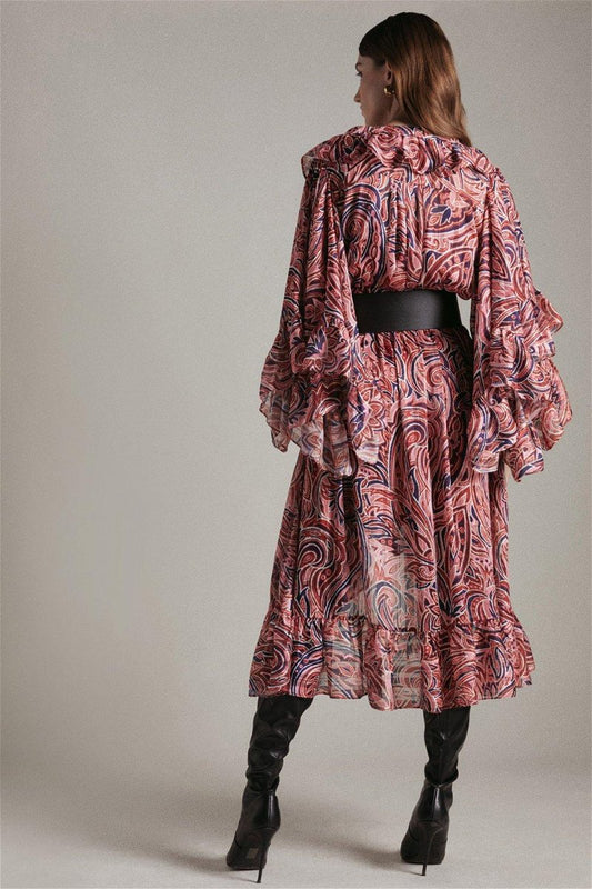 Abstract Print Polka Dot Sleeveless Frill Midi Dress