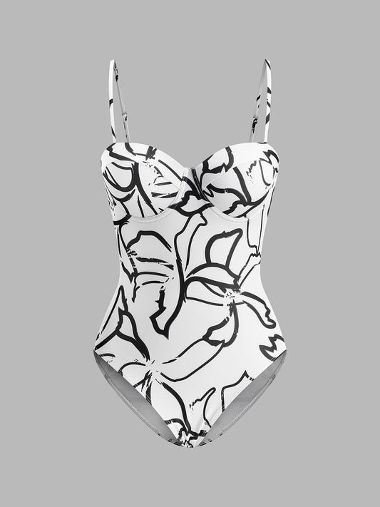 Abstract Print Top & High Waist Ruffle Skirt Set