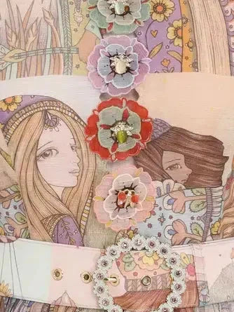 Abstract Print Sleeveless Lapel Lace Up Midi Dress