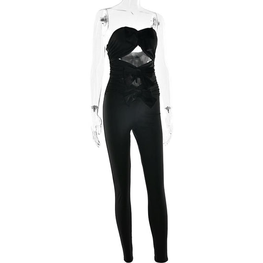Bowknot contrast halter patchwork ruffle long sleeve top