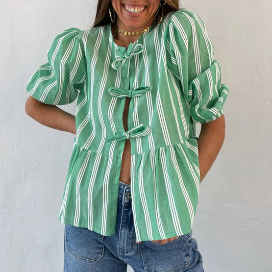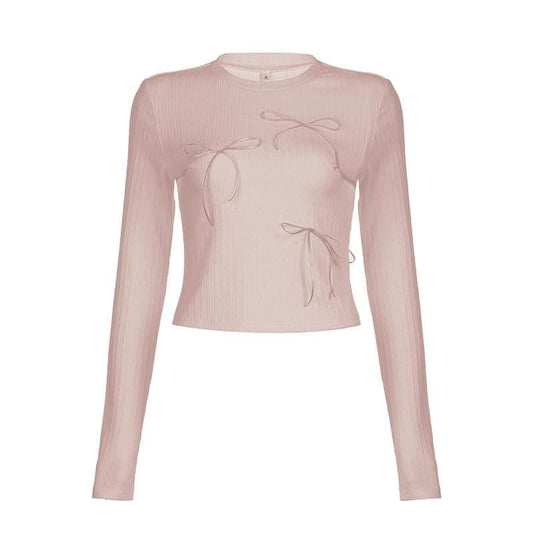 Bowknot Front Hollow Out Vintage Ruffles Puff Sleeve Elegant Sweet Y2K Crop Top