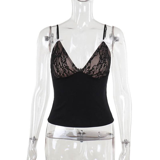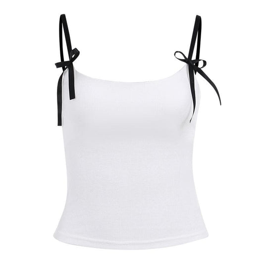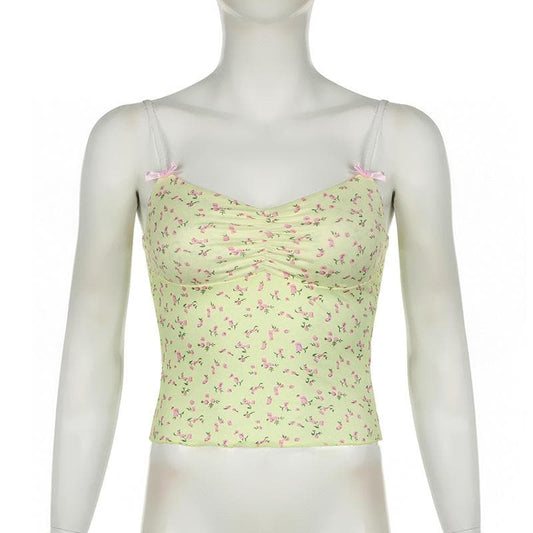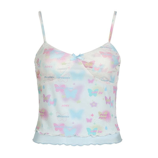 Bowknot butterfly print mesh ruffle cami top-final-sale