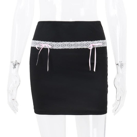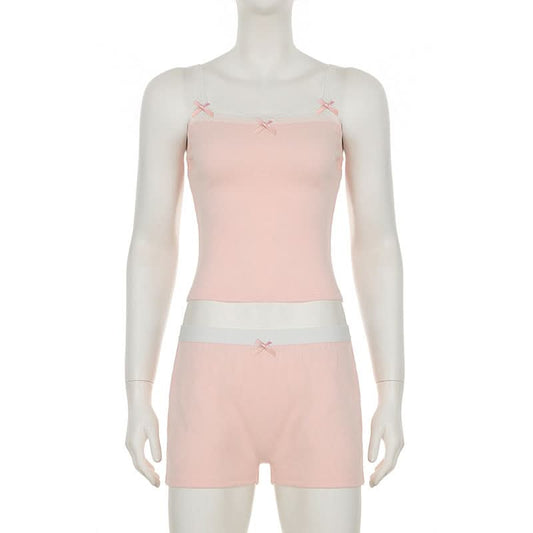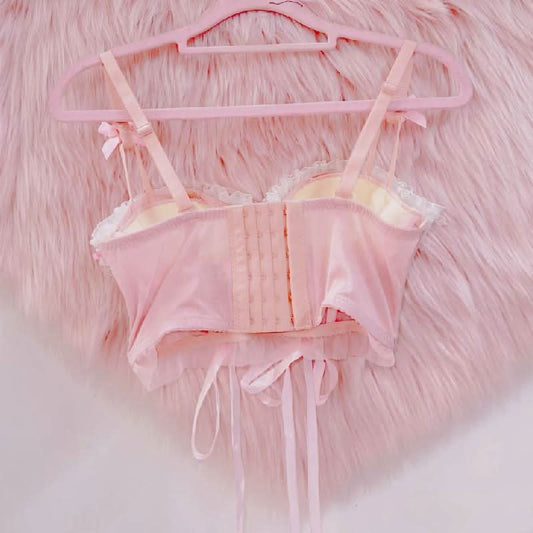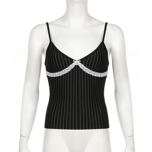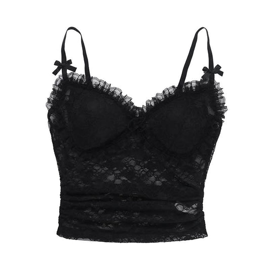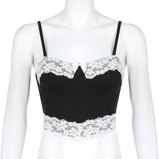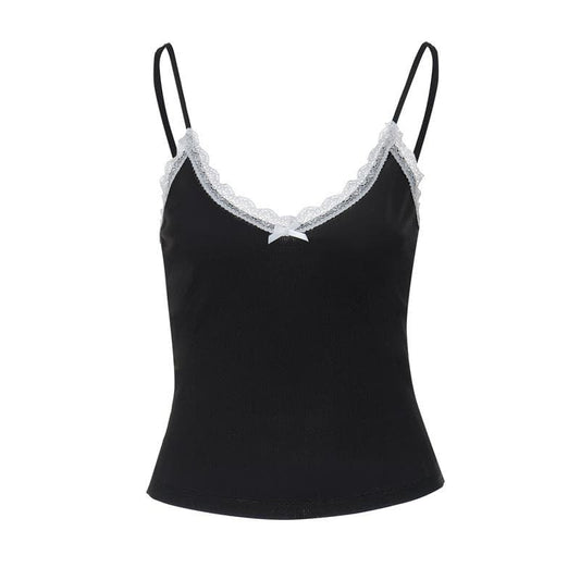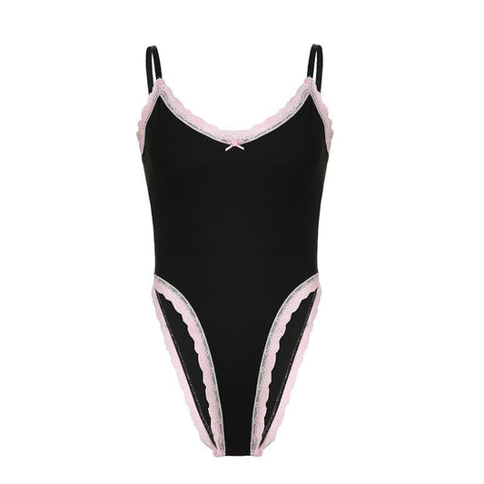 Bowknot lace hem u neck contrast backless cami bodysuit
