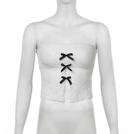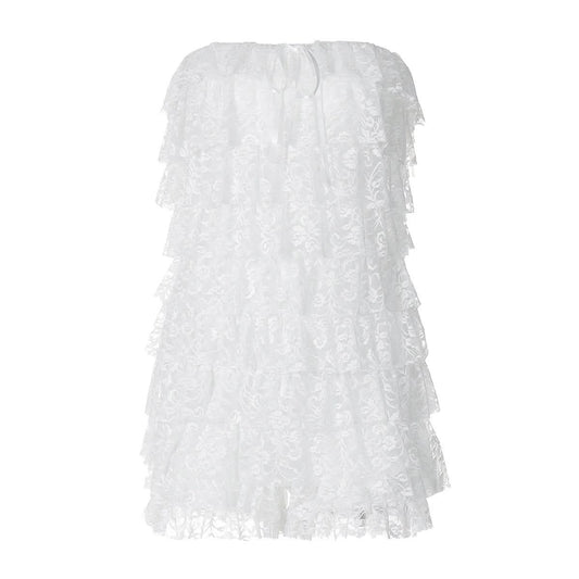 Bowknot lace backless ruffle tube mini dress-final-sale