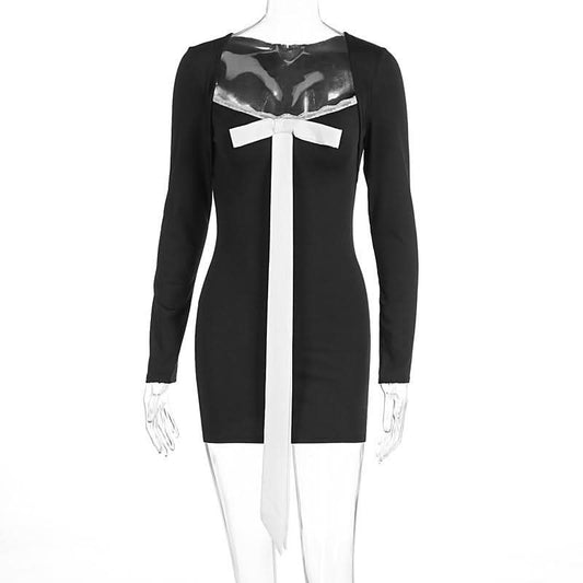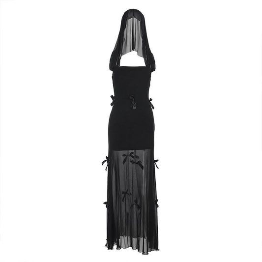 Bowknot hoodie square neck mesh 2-way maxi dress
