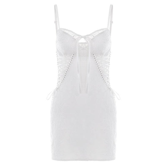 Bowknot sweetheart neck lace lace up textured cami mini dress