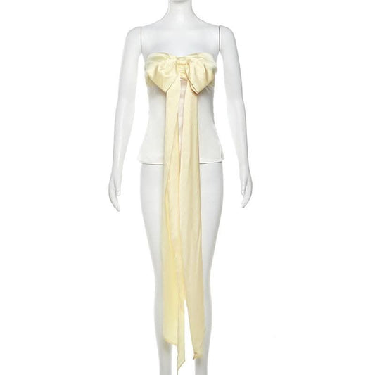 Bowknot sweetheart neck ruched ribbon zip-up satin tube top-final-sale