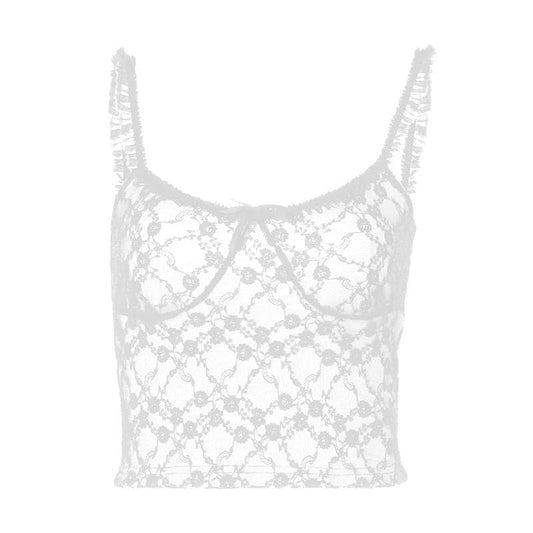 Bowknot sweetheart neck lace ruffle cami top