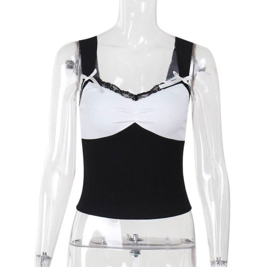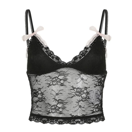 Bowknot ruffle patchwork lace cami top