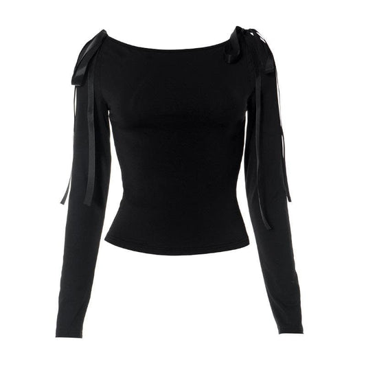Bowknot solid long sleeve off shoulder 2-way top