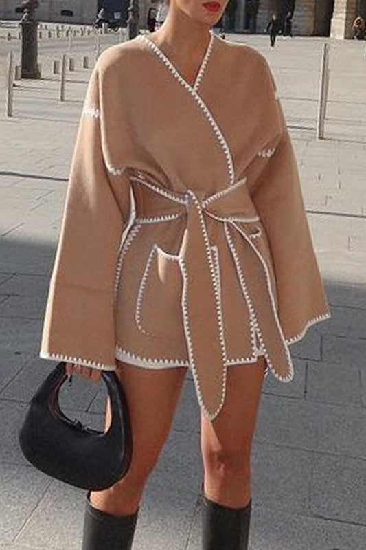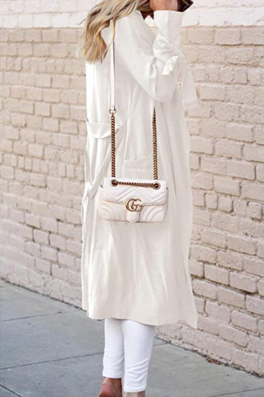 British Style Elegant Solid With Belt Turn-back Collar Outerwear