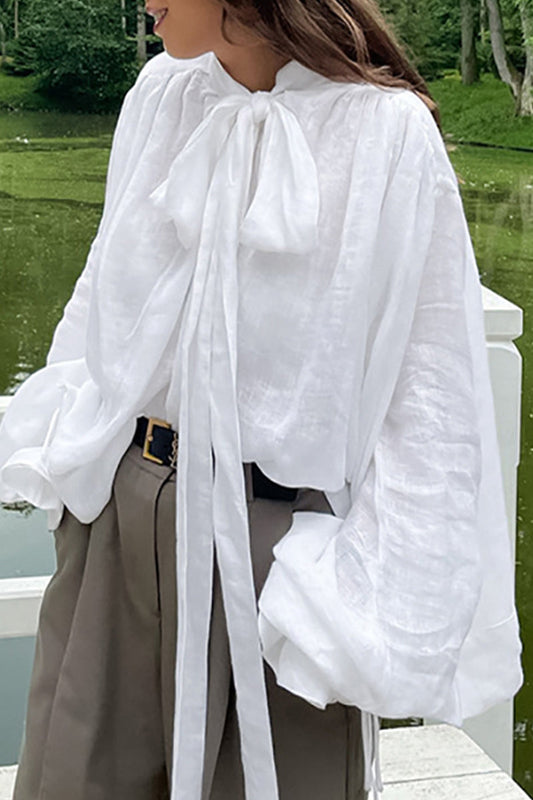 British Style Elegant Solid With Bow Ribbon Collar Tops