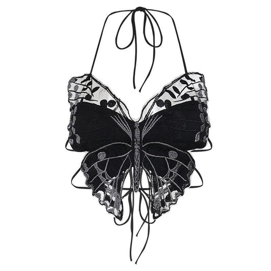 Butterfly pattern mesh garter adjustable cami lingerie set
