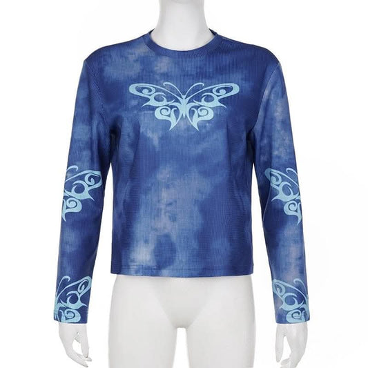 Butterfly pattern long sleeve tie dye crewneck top-final-sale