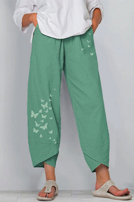 Butterfly Print Capris Loose Mid Waist Wide Leg Positioning Print Bottoms