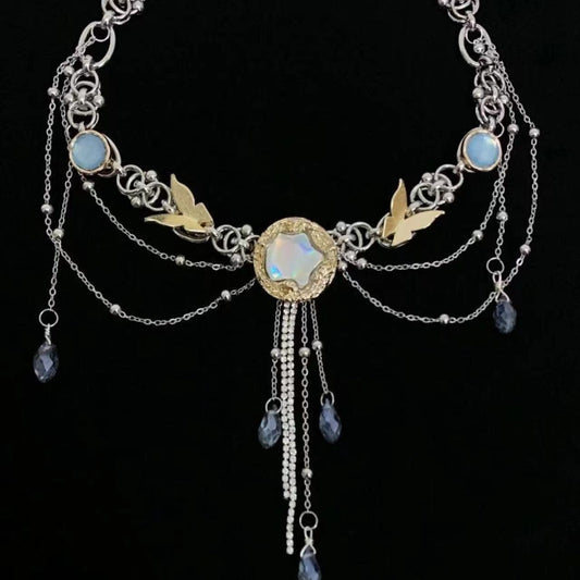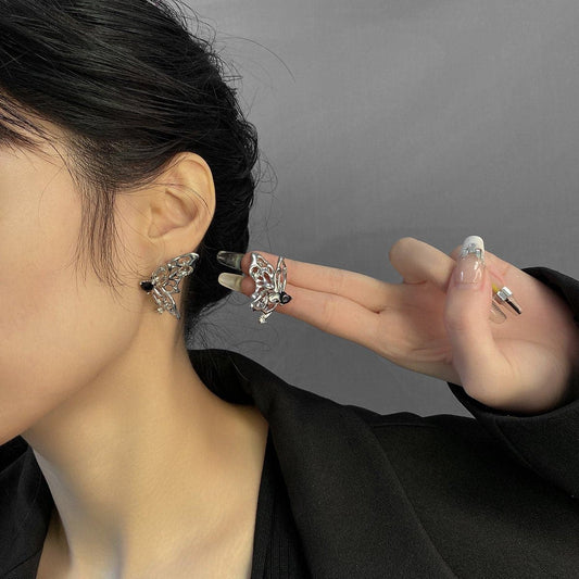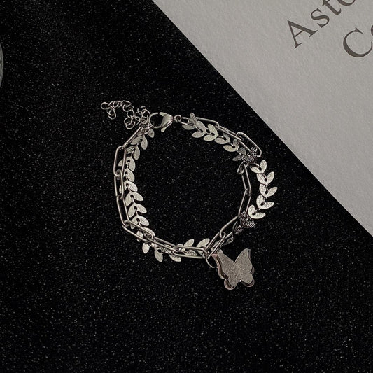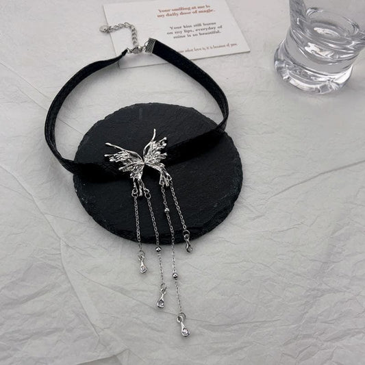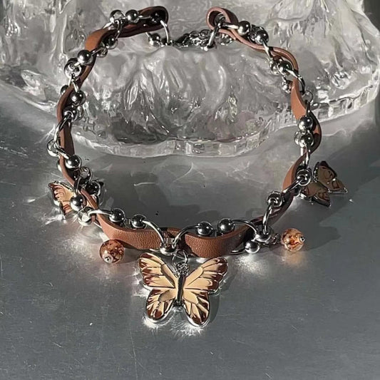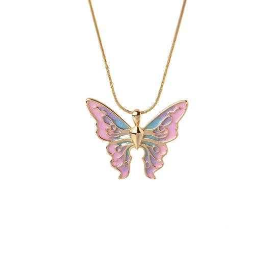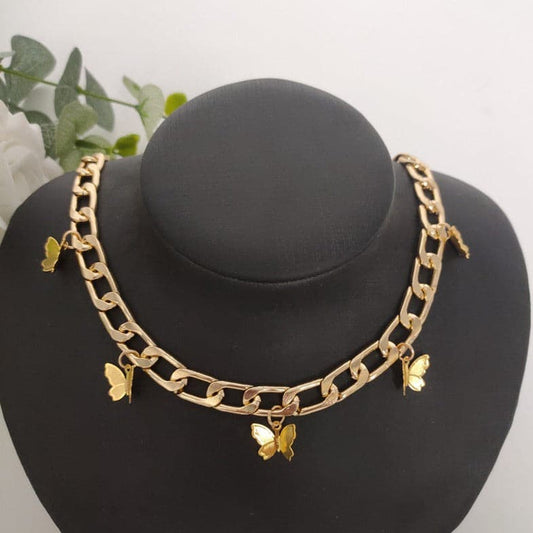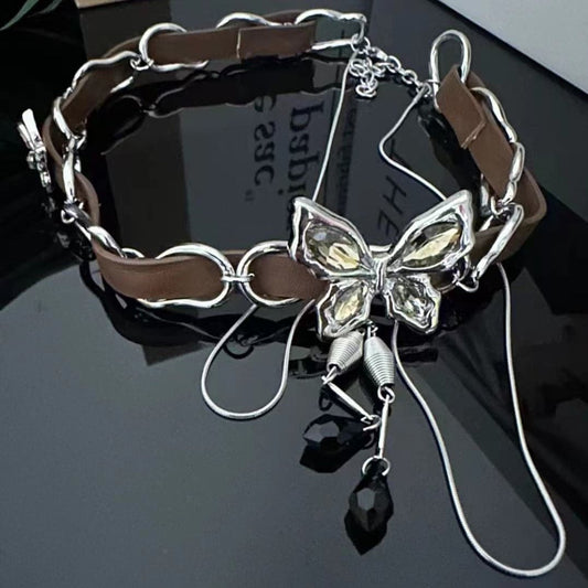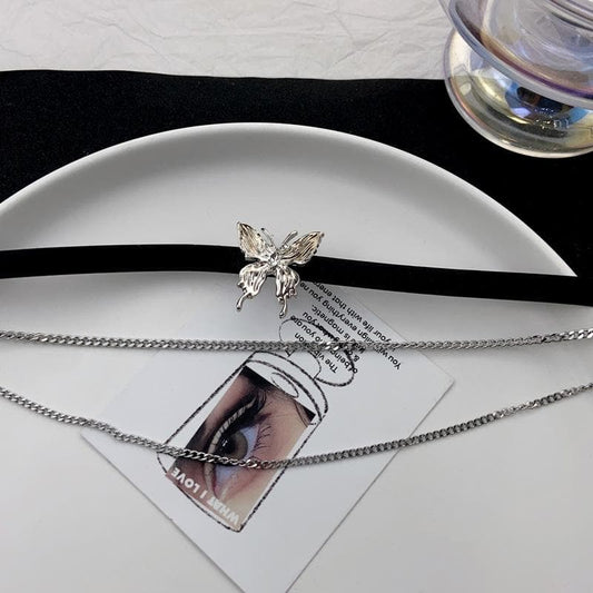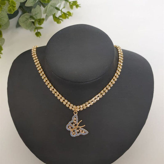 Butterfly pendant rhinestone cuban 2pcs necklace