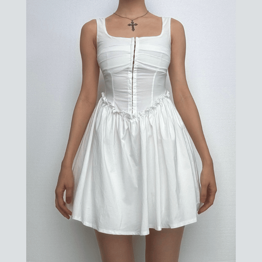 Button Long Sleeve Loose Shirt Dress Elastic Waist Ruffle Skirt