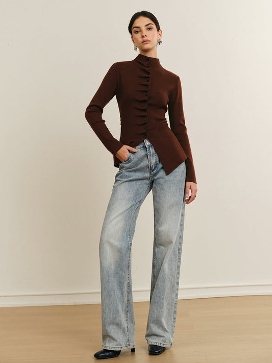 Button Front Pocketed Loose Fit Knitted Cardigan
