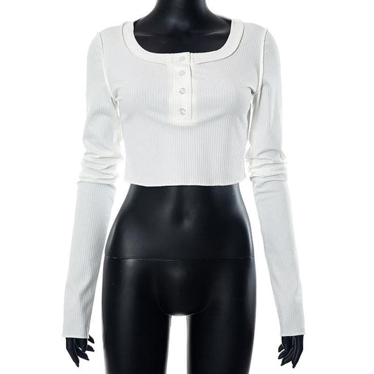 Button ruffle long sleeve lace hem textured solid 2 piece top
