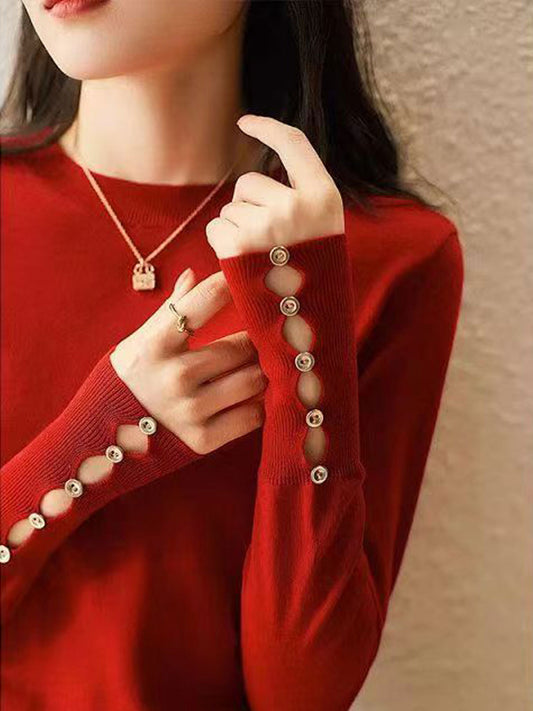 Alexis Elegant Slim Fit Metallic Button Knitted Sweater