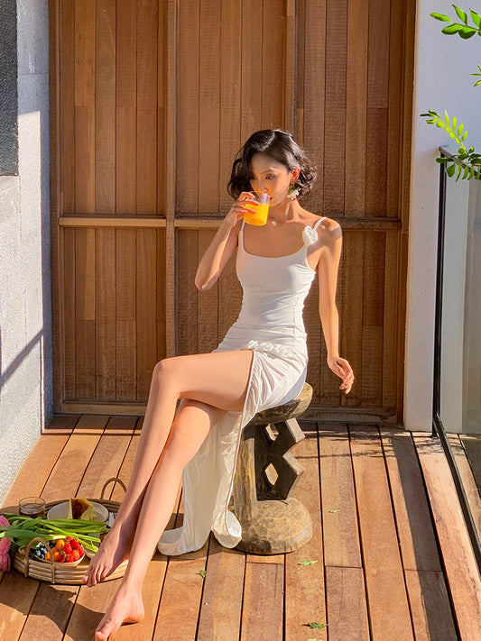 3D Asymmetric Ruffle Split Spring Bikini Three Piece Set Retro Swimsuit Set