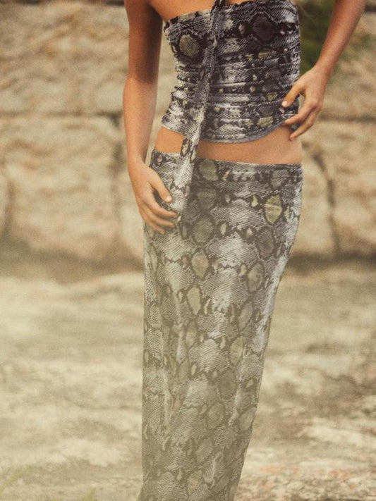 Animal Print Tulle Bandeau Top & Skirt Coord Set