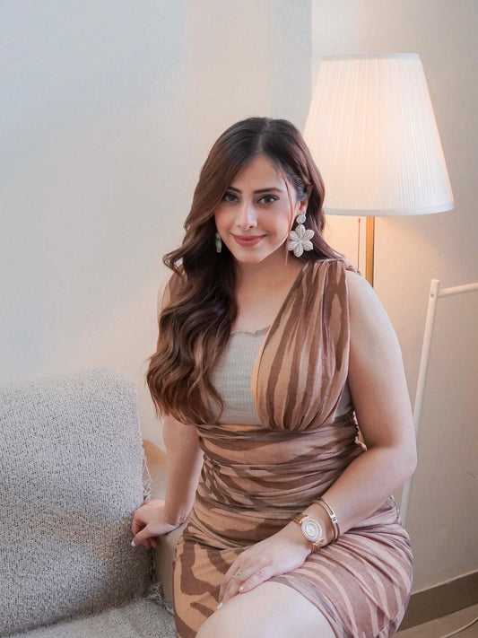 Animal Print Rhinestone Beaded Balloon Short Dress