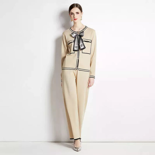 Apricot - Contrast Round-Neck Elegant Two Piece Set
