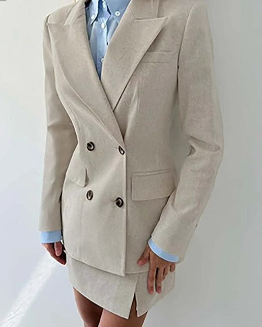 Apricot Double Breasted Mini Skirt Office Two Piece Set