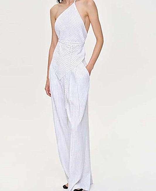 Apricot Print Halter Lace-Up Pants Office Two Piece Set