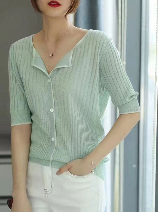 Ariana Chic V-Neck Embroidered Jacquard Shirt